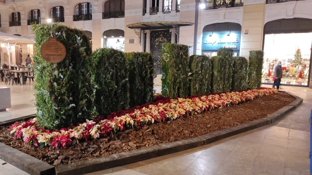 El Ayuntamiento de Alicante ha estrenado nueva ornamentación navideña con guirnaldas vegetales que enmarcan las portaladas del edificio consistorial; en el inicio de la Explanada y en la Plaza de los Luceros. Los adornos están compuestos por planta viva y ramas de sabinas, boj, eucalipto y lentisco, junto a las tradicionales poinsettias o flor de Navidad, que lucen en las principales calles y plazas.