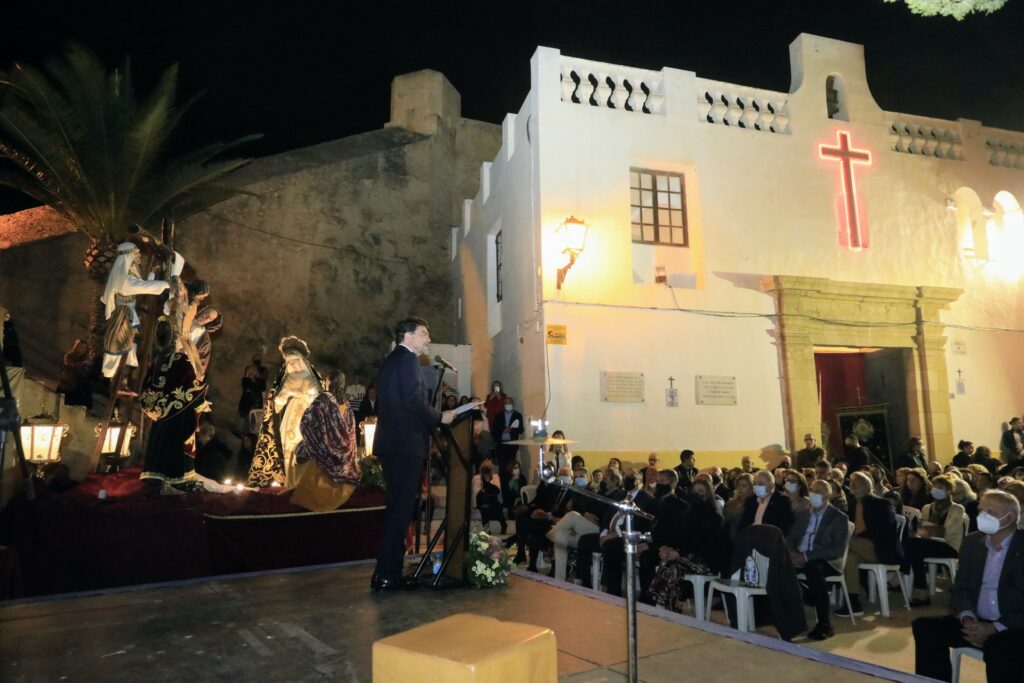 El primer edil sintetizó los hitos más destacados de los 75 años de historia de la Hermandad, tuvo palabras de recuerdo para los capataces y costaleros más significados por su trayectoria, describió cómo se vivió el Miércoles Santo 4 de abril de 2020 cuando el confinamiento impidió la procesión, y alabó la “sencillez y cariño” en el montaje de los Altares de Culto en 2021.